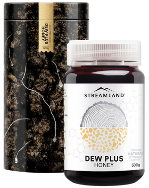 Streamland Dew Plus Honey is only sourced from certain areas of New Zealand and only in small batches. Dark amber in colour, this honey is collected by honeybees foraging from the bark of native Beech trees in the South Island.