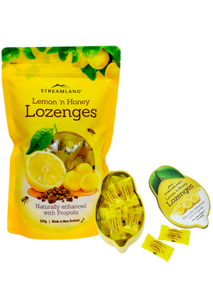 Lemon ‘n Honey lozenges are super soothers - a gift for sore throats and sniffles. We say, they’re a must for any household. Streamland Lemon 'n honey lozenges include propolis (another rich gift from the bee-hives carrying many health benefits).